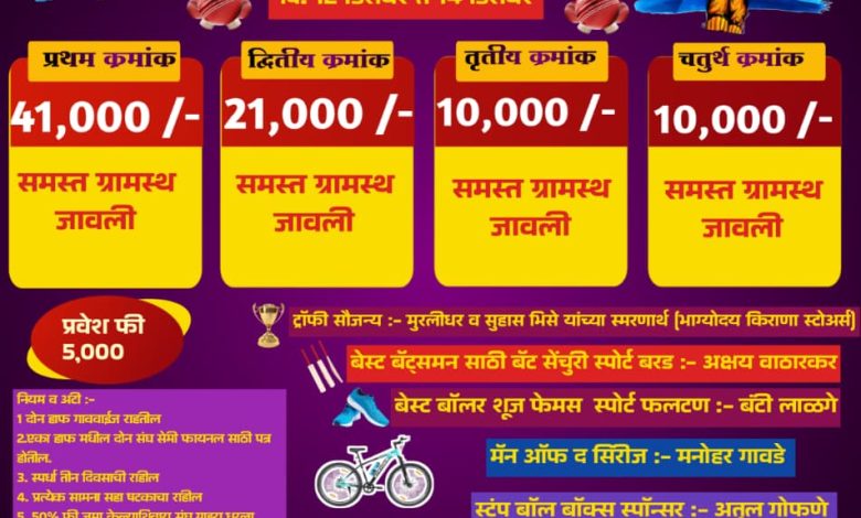 जावल सिद्धनाथ चषक २०२५/२६ भव्य टेनिस बॉल क्रिकेट स्पर्धेचे दि १२ ते १४ रोजी आयोजन