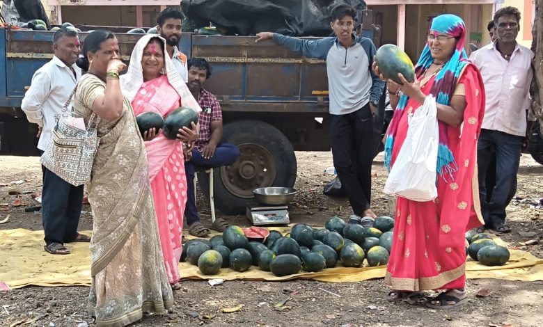 जावली ता. फलटण येथे उन्हाच्या तडाख्यात गोड-गार कलिंगडाला ग्राहकांची पसंती