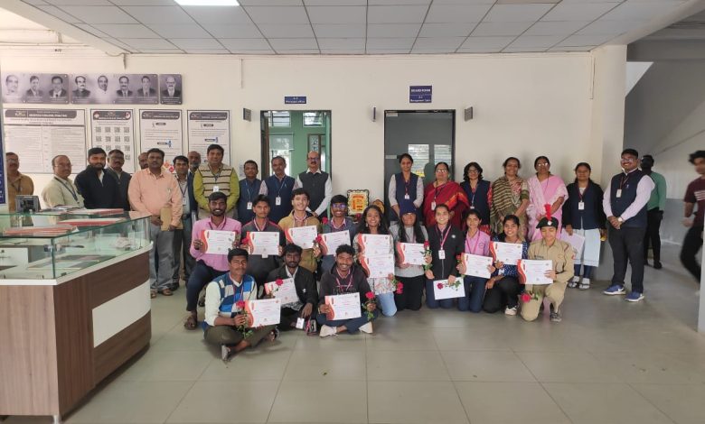 (फलटण/ प्रतिनिधी)2025 रोजी श्री सेवागिरी देवस्थान ट्रस्ट, पुसेगाव आयोजित बाराव्या खुला युवा महोत्सवात मुधोजी महाविद्यालयातील कलाकार विद्यार्थ्यांनी तीन कलाप्रकारात उत्कृष्ट सादरीकरण करून घवघवीत यश संपादन केले व प्रेक्षकांची मने जिंकली. पथनाट्य कलाप्रकारात प्रथम क्रमांक मिळवून 11000 रुपयांचे रोख पारितोषिक व आकर्षक चषक पटकावला . लाईव्ह लोकनृत्य स्पर्धाप्रकारात धनगरी गजी लोकनृत्य सादरीकरण करून द्वितीय क्रमांक क्रमांक 12000 रोख रक्कम व स्मृतिचिन्ह तसेच लोकनृत्य रेकॉर्डिंग स्पर्धेत महाराष्ट्रातील कोळी लोकनृत्या स द्वितीय क्रमांक रोख रक्कम 6000 व आकर्षक चषक पटकावला व युवा महोत्सवात बाजी मारली.