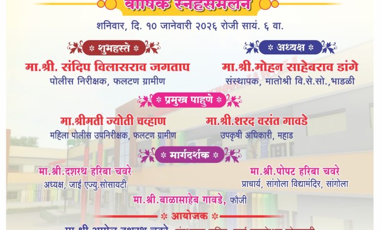 (जावली /अजिंक्य आढाव ) – जावली ता फलटण येथील रॉयल इंग्लिश स्कूल अँड ज्युनिअर कॉलेज यांच्या वतीने सन 2025/26 वार्षिक स्नेहसंमेलन शनिवार दि. 10 जानेवारी रोजी सायंकाळी 6 वाजता कार्यक्रमाचे आयोजन करण्यात आले आहे.