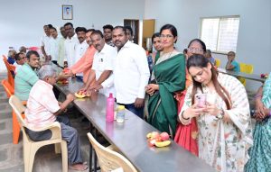 कुरवली येथील ओंकार वृद्धाश्रमातही वृद्धांना फळे व आम्रखंडाचे वितरण करण्यात आले. तसेच महात्मा शिक्षण संस्था संचलित मूकबधिर विद्यालयातील विद्यार्थ्यांना खाऊचे वाटप करून त्यांच्या चेहऱ्यावर आनंद फुलविण्यात आला.